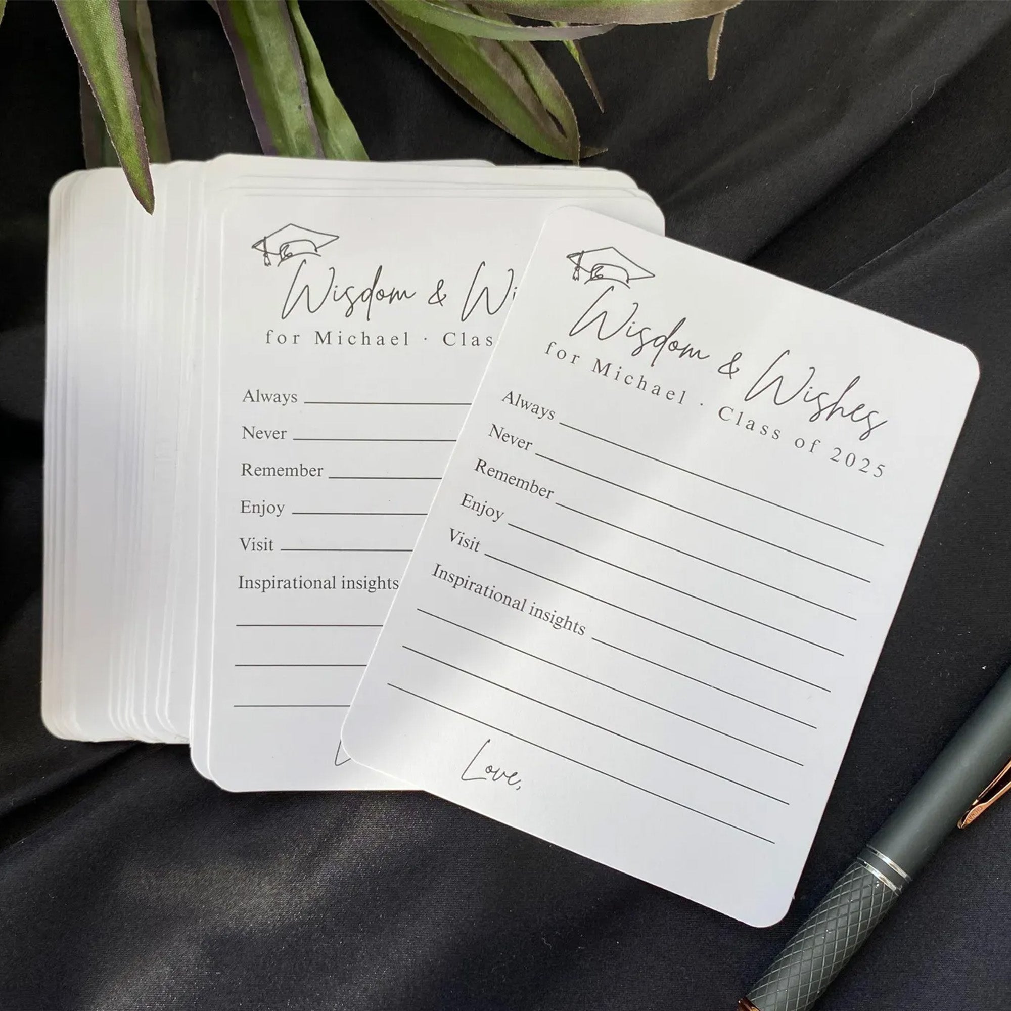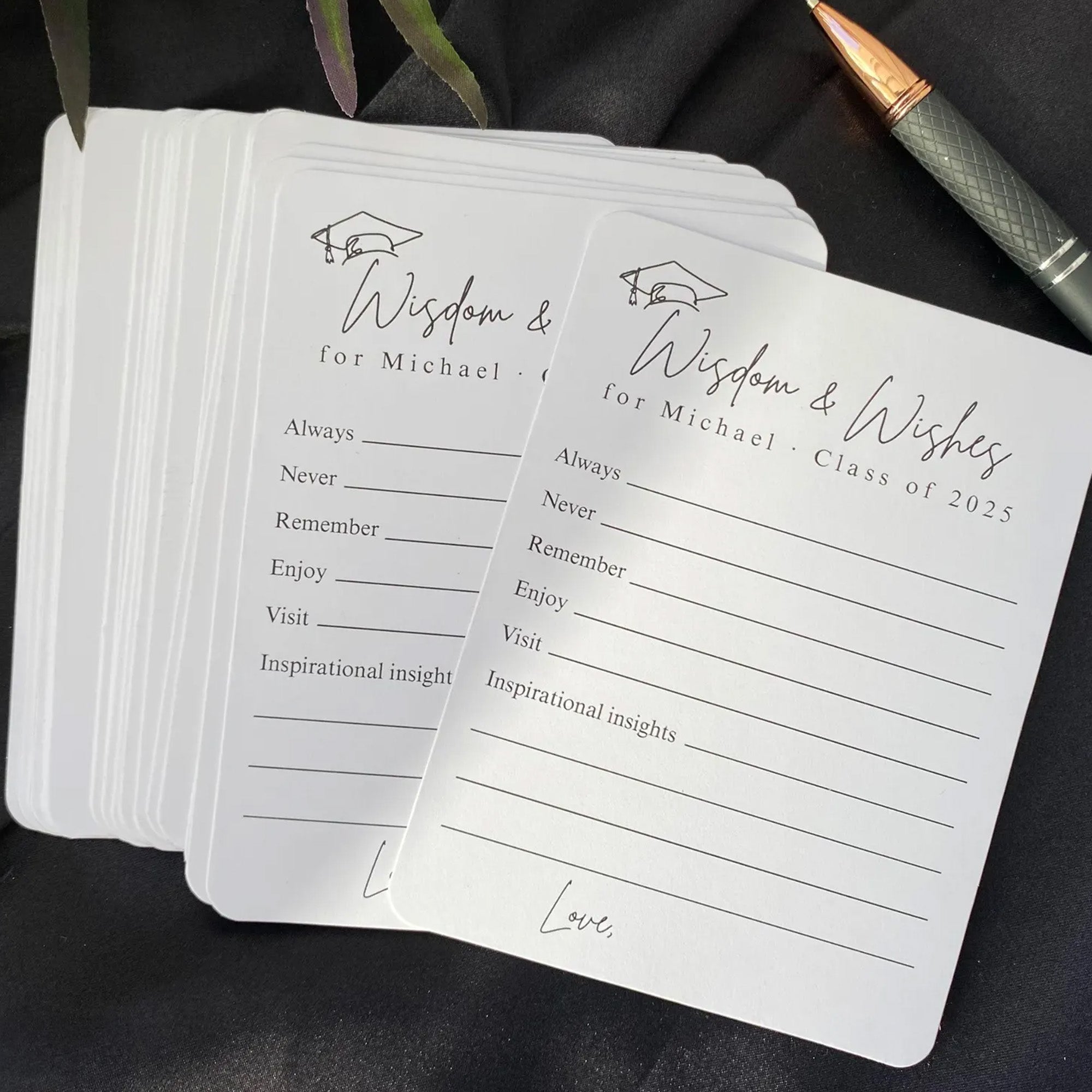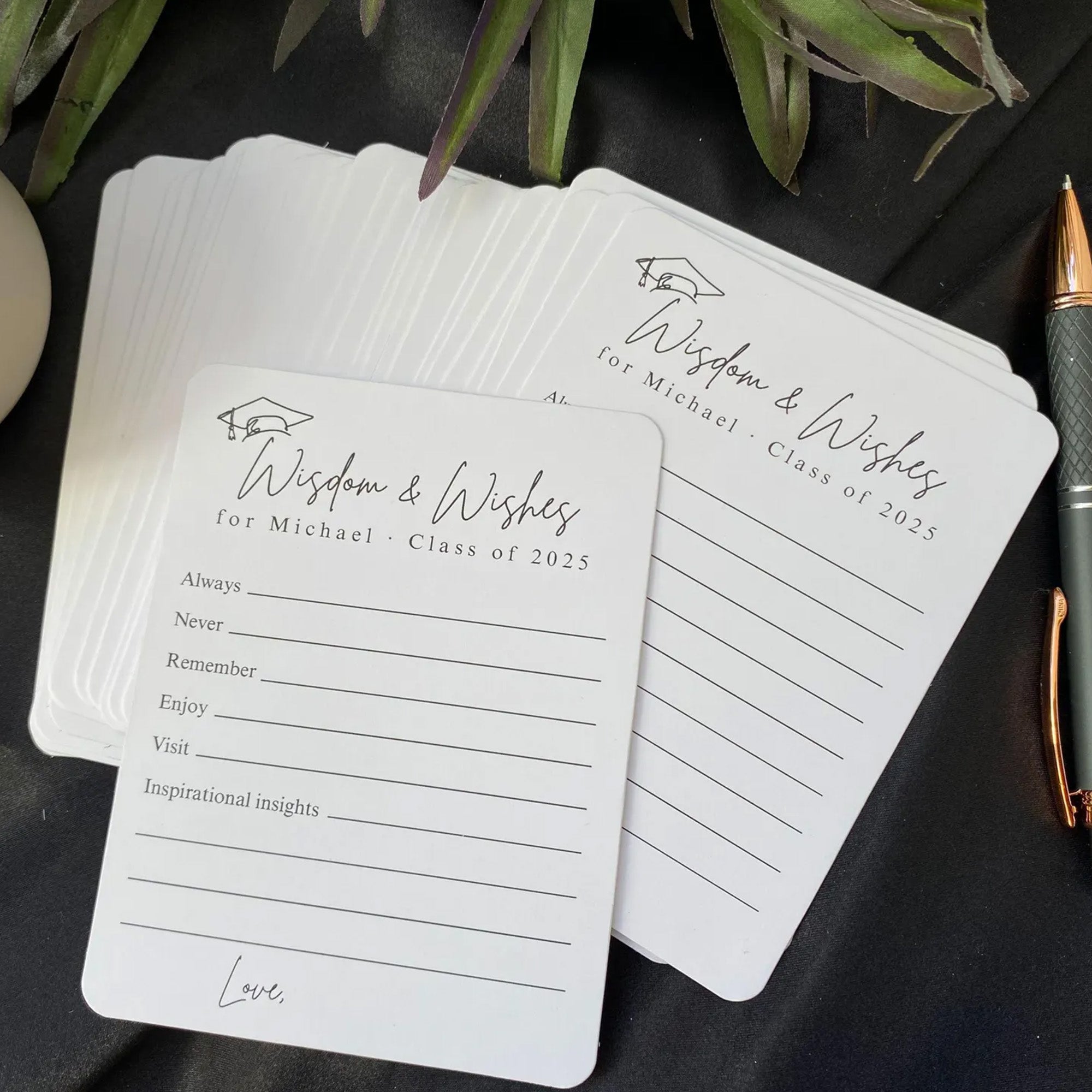 Make your celebration more meaningful with the Set of 12 Graduation Wishes Cards โ€“ Advice Cards for Graduation Party. Designed for friends and family to share heartfelt messages, advice, and well wishes, these cards add a personal touch to any graduation event. Perfect for parties, memory boxes, or keepsakes the graduate can cherish for years. A thoughtful addition to celebrate and support the Class of 2026. ๐ŸŽ“๐Ÿ’Œ
