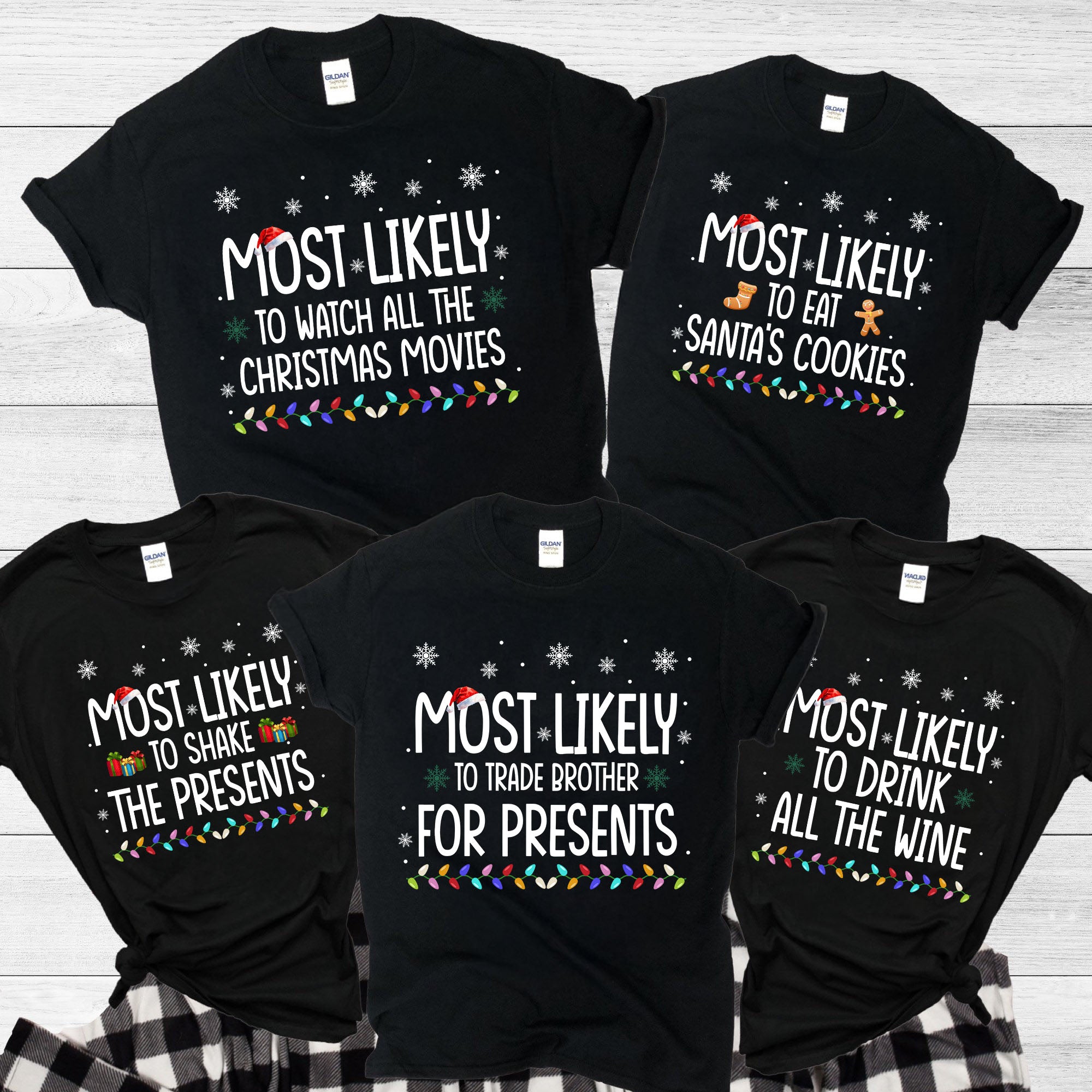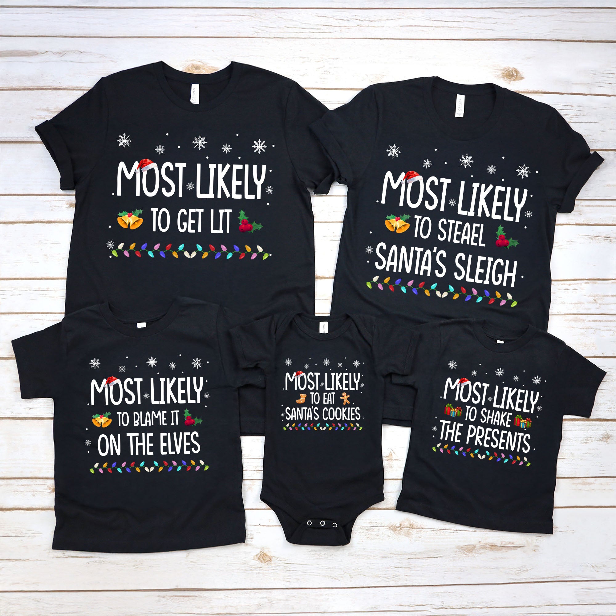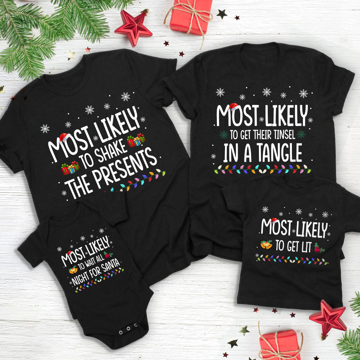 Bring the family together this holiday season with our Colored Lights Most Likely To Matching Shirts. These personalized Christmas gifts create a fun, festive way to celebrate your unique family bonds. Comfortable and eye-catching, they make every holiday moment memorable and perfect for photos. Show your family's playful spirit and create lasting memories with a gift they’ll cherish every year.